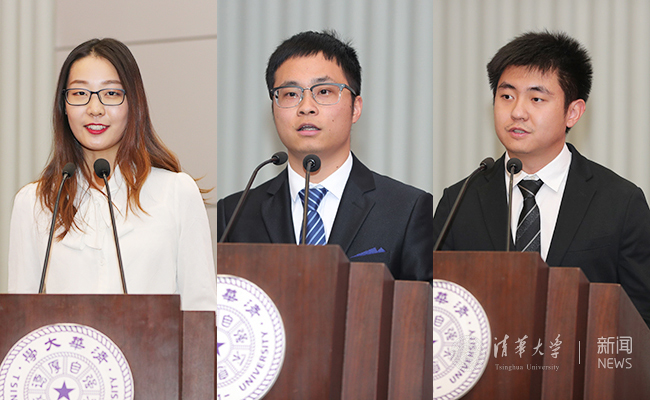 校级优秀班集体代表、生64班的赤雅蓉回顾了班级同学在集体中成长,团结一心砥砺奋进,最终获得收获的经历。特等奖学金获得者、材料学院2015级本科生江国琛说,是清华大学的经历令他的视野开阔,拥抱更广阔的世界,也体会了成长的快乐。在未来,他选择了激光加工的研究方向,立志将自身的价值与国家的需求紧密结合起来。特等奖学金获得者、电子系2014级研究生高昕宇分享了自己的科研经历。他立志“不要在北京盖大楼,而要在南极建茅草棚”,清华学子应该进行开创新的工作,具备百折不挠的精神。