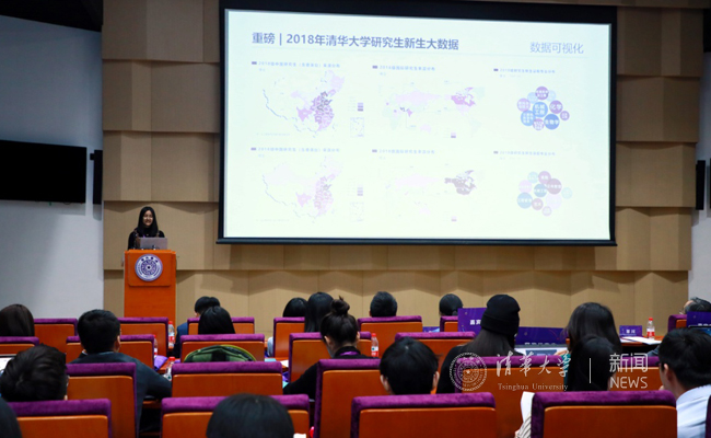 视觉创意类代表、校团委宣传部视觉中心主任、建筑学院研究生李佳楠则通过图片和数据可视化传达着她眼中的清华。她说:“做好一篇视觉类的推送其实除了掌握一定的美术功底之外,更重要的其实是前期的策划构思以及选择恰当的表达方式,如何选好题就是一篇好作品的开端!”而时间、地点、人物、事件四个要素就是她的制胜法宝。