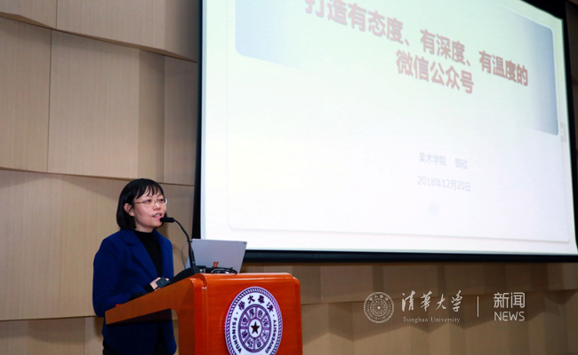 校团委紫荆传媒总编辑、新闻学院研究生曾繁尘和美术学院党委副书记、艺术博物馆副馆长邹欣分别讲述了他们与平台的点点滴滴。一位是已经与优质平台“清华小五爷园”走过500天的学生,一位是做学生工作12年的老师,身份不同,但对网络文化平台的热爱是一样的。2018年来,“清华小五爷园”已诞生9篇“10W+”推送,精品不断,好评如潮。曾繁尘说,故事都是有生命力的,越是好的选题越要慎重对待、倾注心血,努力创作配得上这所学校学生水平的好作品。邹欣认为,院系微信公众号是反映、推动院系建设和发展的途径,是外塑形象、内聚人心的平台,是记录学院发展历史的基础,所以我们有义务把“清华大学美术学院”微信公众号做到有态度、有深度、有温度。