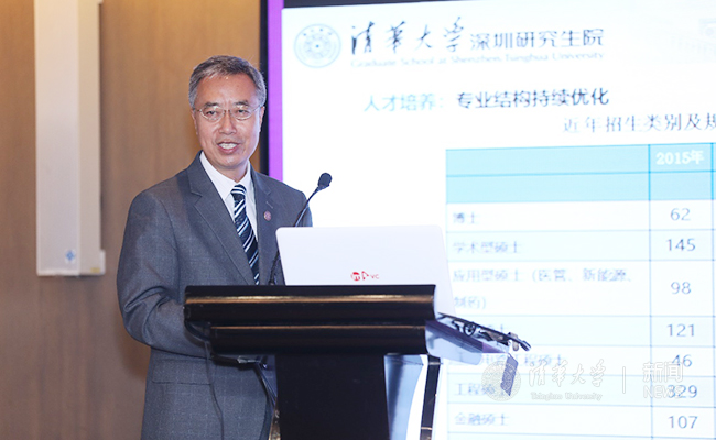 武晓峰在主题演讲中重点介绍了清华大学深圳研究生院近20年发展历程和各阶段特色,将清华大学在粤港澳大湾区战略中的作用,与美国顶尖高校在旧金山湾区人才培养和科学研究方面的作用进行了比较分析。