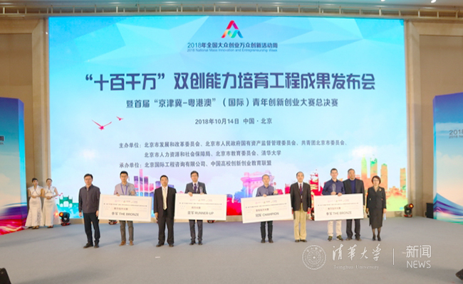 清华新闻网10月17日电 10月14日,第一届“京津冀-粤港澳”(国际)青年创新创业大赛总决赛暨“十百千万”双创能力培育工程成果发布会在全国“大众创业、万众创新”活动周北京分会场举行。大赛是由清华大学与中国高校创新创业教育联盟共同主办的国际性创新创业赛事。