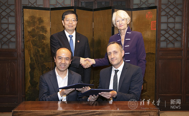 邱勇和罗斯韦尔共同见证清华大学生命学院与曼彻斯特大学生物技术研究所签署合作备忘录 李派 摄
