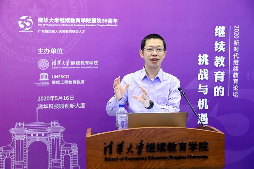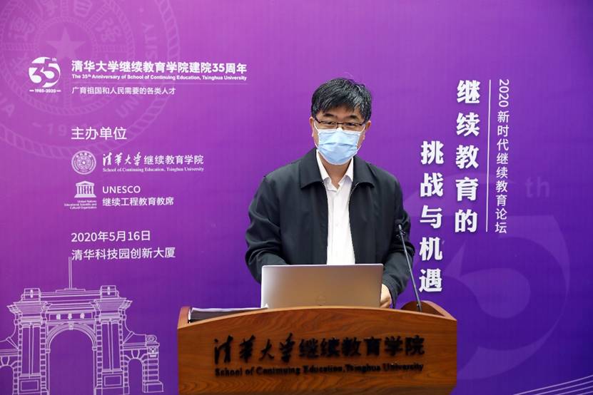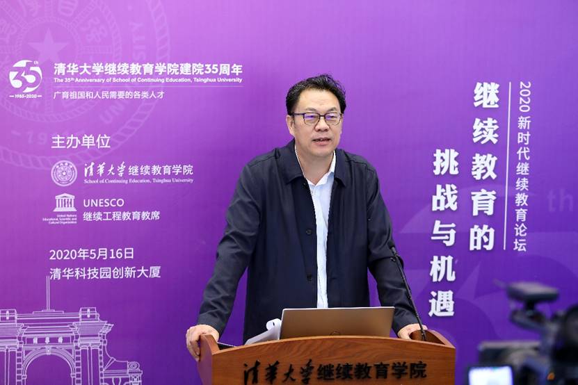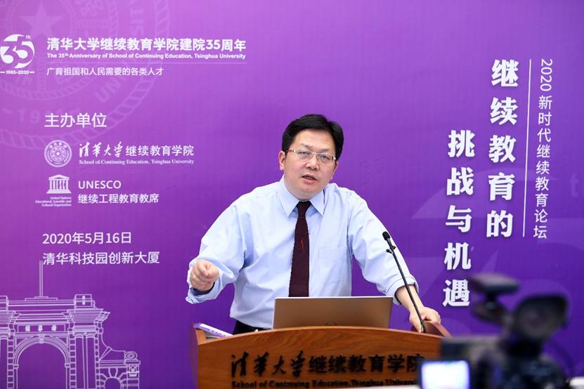 清华新闻网5月18日电在疫情防控的特殊时期,清华大学继续教育学院用云论坛、云课堂、云展览等特殊方式开展建院35周年系列活动。5月16日上午,2020新时代继续教育论坛在清华科技园创新大厦举行。论坛以“继续教育的挑战与机遇”为主题,邀请继续教育界同仁齐聚“云端”,聚焦国内继续教育发展的形势和趋势,探讨疫情背景下继续教育的挑战与机遇。清华大学副校长郑力致开幕辞。国家教育咨询委员会秘书长张力、清华大学在线教学指导专家组组长于歆杰、建行大学执行校长薛胜利、华润集团智能与信息化部负责人董坤磊、清华大学继续教育学院院长刘震先后作主题发言。继续教育学院党委书记兼副院长刁庆军主持会议。