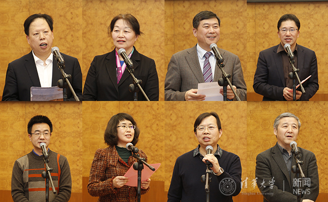 茶话会上,2017年国家科技进步奖一等奖获得者、能动系教授吕俊复,首届“清华大学新百年教学成就奖”获得者、体育部副主任赵青,中国工程院院士、清华大学临床医学院院长、北京清华长庚医院执行院长董家鸿,精仪系教授孙洪波,美术学院副教授米海鹏,幼儿园副园长、党支部书记李香月,汽车系原党委书记帅石金,人文学院教授汪晖相继发言,分享了自己过去一年在清华工作中的感受与收获,送上对新春的祝福和美好期待。