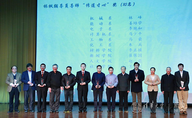 会上还为学生身份林枫辅导员奖获得者的导师颁发了“传道寸心”奖,以表彰他们对辅导员的关心和支持。其中,繁体的“导”字(導)寓意辅导员和导师都是用心传道的“导”,“传道千古事,得失寸心知”。