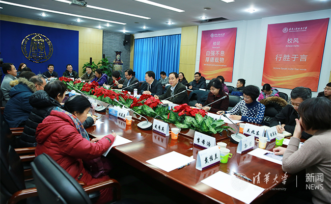 清华洁华幼儿园园长杨瑞清、清华附小校长窦桂梅、清华大学医院院长郭建丽、清华附中校长王殿军分别汇报交流了建设发展中遇到的人员编制、环境设施、资源投入等方面的问题。