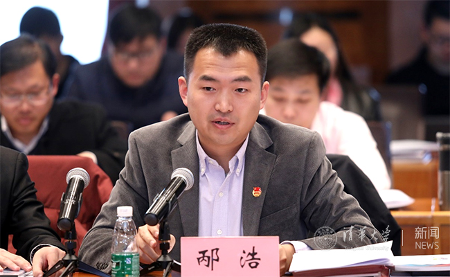 邴浩在研讨会上发言。