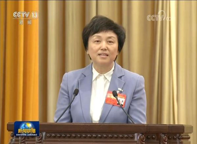 陈旭做大会发言。图片来源:央视新闻联播截图。