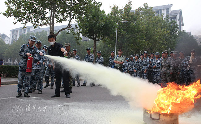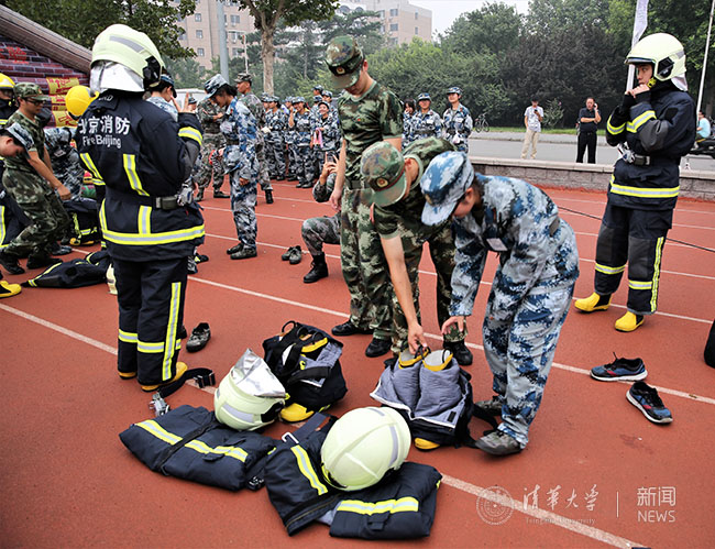 清华大学举行“消防进军训,平安育人才”示范展示活动