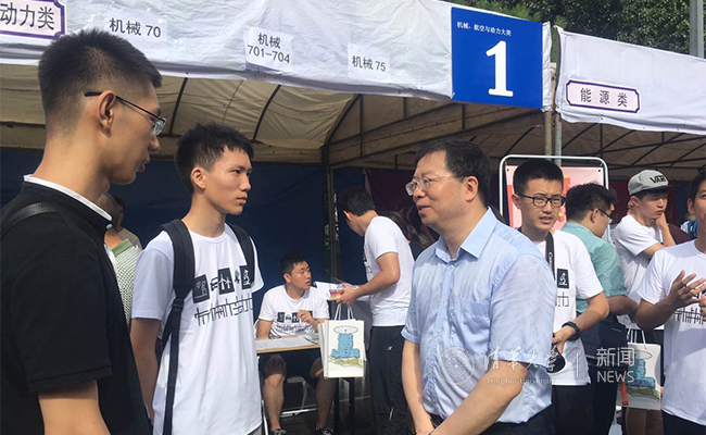 邱勇、陈旭等详细了解了新生报到的相关工作情况,并与新生同学们亲切交谈。