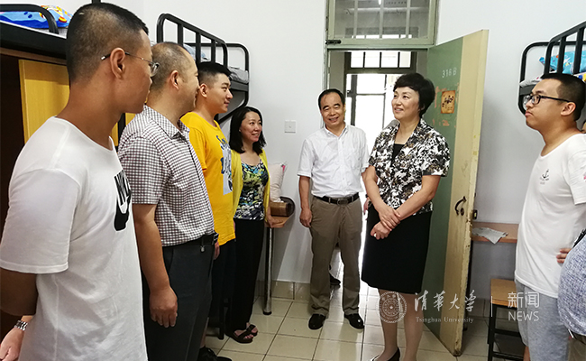 陈旭、吉俊民到学生宿舍看望新生及其亲友。记者 苑洁 摄