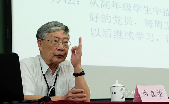 原校党委书记方惠坚作了题为“辅导员制度与蒋南翔教育思想”的专题报告。他回顾了清华大学“双肩挑”思想政治辅导员制度六十多年来的发展历程,并系统地讲解了蒋南翔的教育思想及其实践经验。他鼓励全体新上岗辅导员增强责任感,在新的时期要继承和发扬蒋南翔的教育思想理念,不断拓宽工作新思路,开创工作新局面。