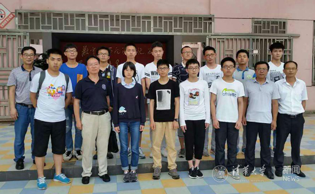 招生组教师在江西省丰城中学,该中学的金淼同学(左三)摘得2017年江西省高考文科头名,报考清华大学经管类专业。