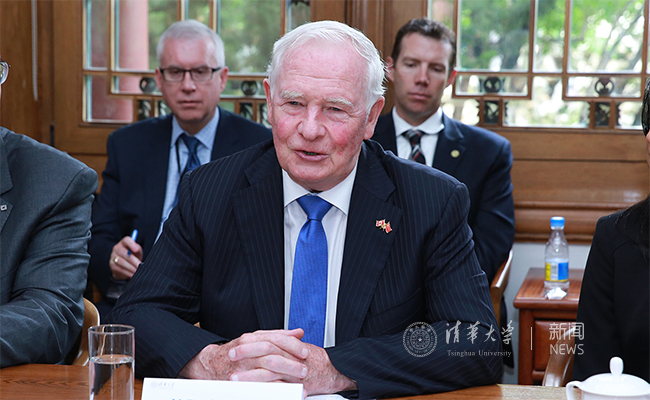 清华新闻网7月15日电(记者 李含)7月14日,加拿大总督戴维·约翰斯顿(David Johnston)访问清华大学。清华大学校长邱勇在工字厅与约翰斯顿先生进行了会谈。加拿大小型企业和旅游业部长兼下议院执政党首席议员楚萱歌女士(Bardish Chagger)、体育与残疾人事务部长卡尔拉·夸尔特罗(Carla Qualtrough)、驻华大使麦家廉(John McCallum)陪同来访。中国驻加拿大大使卢沙野、清华大学副校长施一公参加会见。