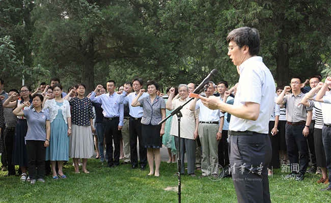 清华新闻网6月30日电(记者 刘蔚如)在中国共产党成立96周年之际,6月30日上午,清华大学校机关党支部联合主题党日活动在三院遗址——清华第一个中共支部诞生地举行。校党委书记陈旭,校党委副书记、纪委书记李一兵等以普通党员身份参加活动。