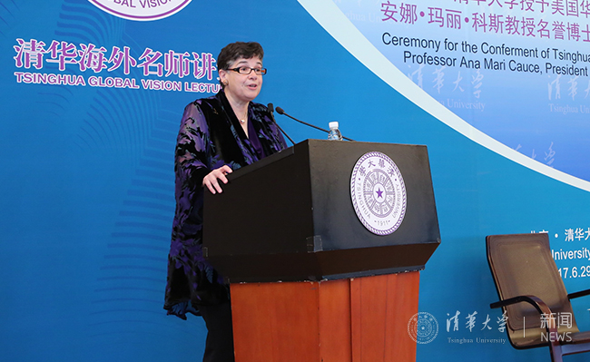 美国华盛顿大学校长安娜·科斯获清华大学名誉博士学位