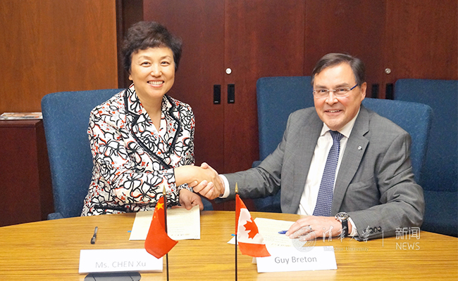 6月1日下午,陈旭一行访问蒙特利尔大学,会见校长盖伊·布雷顿(Guy Breton),双方在校级合作备忘录基础上签署学生交换协议。会谈中,陈旭介绍了清华大学在国际化人才培养和创新创业教育方面的最新进展,表示希望和蒙特利尔大学在新签署的协议基础上,共同推动学生学者互访交流,在创新创业教育、暑期学校等方面开展合作,进一步推动中加两国在科技创新等领域的人文交流。