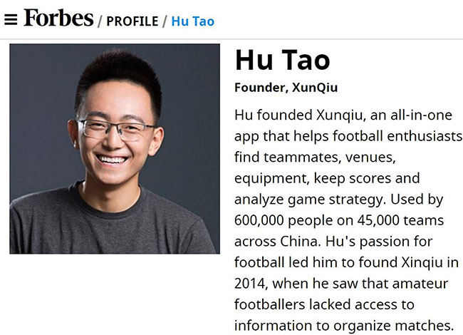 校友呼涛。照片摘自Forbes网站