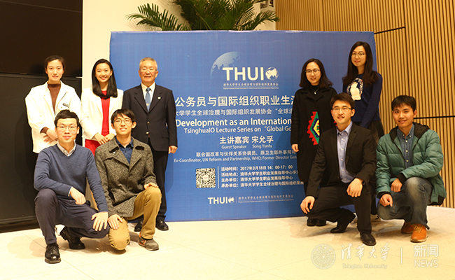 清华新闻网3月23日电 (通讯员 刘亮)3月18日,世界卫生组织前高级官员、卫生部外事司原司长宋允孚受邀来到清华大学,在学生职业发展指导中心以“国际公务员与国际组织职业生涯发展之路”为题,为清华学子带来了一场精彩的讲座。清华大学党委副书记史宗恺出席讲座并致辞。