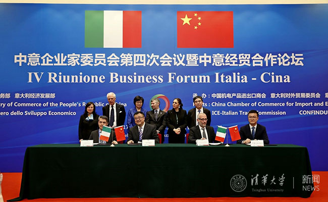 清华新闻网2月27日电 (实习记者 吴月)2月22日,清华大学副校长杨斌与意大利都灵理工大学校长吉里教授(Prof. Marco Gilli)出席了在人民大会堂举行的中意企业家委员会第四次会议暨中意经贸合作论坛,并在论坛中签署了冬奥会管理人才培训的合作意向书。