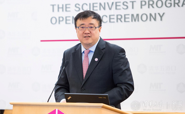 杨斌在致辞时介绍了项目主要情况。科学企业家项目依托两所有着悠久历史和科技积淀世界顶尖学府——清华大学和麻省理工学院。据统计,麻省理工学院在全球范围里所孵化的创新高科技企业每年带来约2万亿美元的收入,相当于世界上GDP排名第11的国家,是美国非常重要的科技引擎。清华大学的科技创新也一直在全国执牛耳,在世界上有一定影响力。杨斌表示,习近平总书记在2016年6月全国科学大会上说,“对于新技术革命和产业变革来说,是我们现在所面临的最大的不确定因素,抓住它就是机遇,丧失它就是挑战。”科学企业家项目为清华大学继续教育领域“皇冠上的明珠”,希望同学们通过项目学习紧紧抓住新阶段的发展机遇。希望首期班结合两校的科学家、管理研究者、金融家的力量,共同把项目打造成清华最顶级的企业家项目。