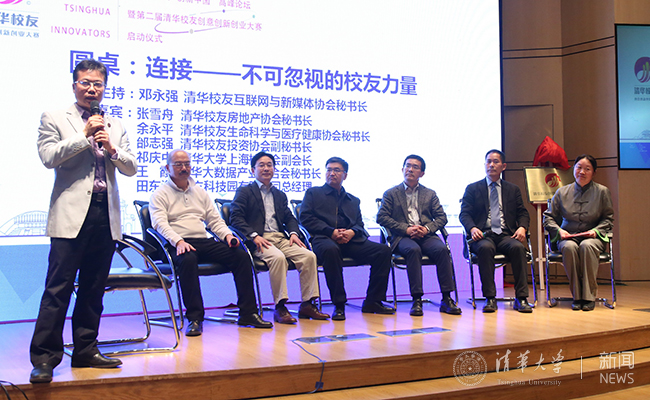 校友互联网与新媒体协会秘书长、三创大赛组委会执行秘书长邓永强主持了“连接——不可忽视的校友力量”圆桌讨论。同方科技园有限公司总经理田东海、校友房地产协会秘书长张雪舟、校友生命科学与医疗健康协会秘书长余永平、校友投资协会副秘书长邰志强、上海校友会副会长祁庆中、清华大数据产业联合会秘书长王霞作为对话嘉宾,热情介绍自己机构在创新创业和产业、资本等丰富资源,积极表态带动更多的校友发扬清华校友互帮互助的光荣传统,从资本、人才、技术、市场、媒体、政策等各方面全方位支持清华学生和校友创新创业,同时也支持清华校友的企业和产业更快成长和成功,共同打造清华创业圈。