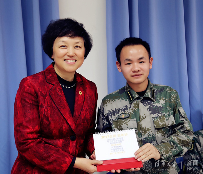 学生代表向陈旭赠送班级台历。 林 帆 摄