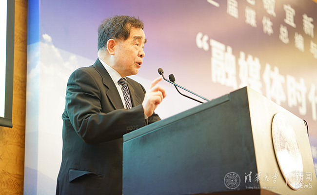 全国人民代表大会教育科学文化卫生委员会主任委员、范敬宜新闻教育基金理事会理事长、清华大学新闻与传播学院院长柳斌杰致辞。