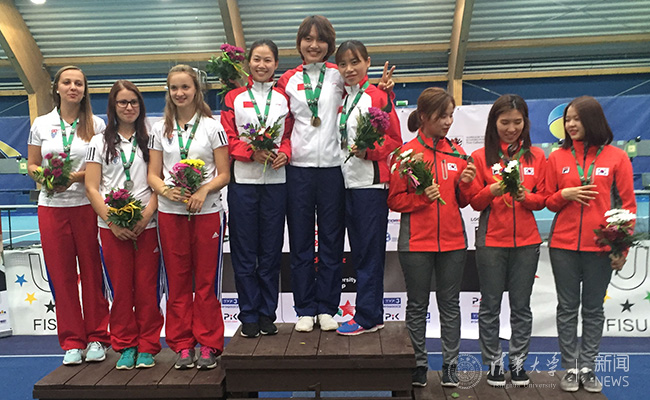 清华大学射击队有7名同学参赛,共获得1金2银1铜。其中,易思玲(经管学院2011级本科生)、陈芳(经管学院2013级本科生)与陈东琦(内蒙古师范大学)夺得女子步枪三姿比赛团体冠军和女子卧射团体亚军,陈芳获得女子步枪三姿个人季军。易思玲带病参赛获得女子10米气步枪个人银牌。整个比赛过程遇到不少困难和挑战,中国大学生运动员们充分展示了自身的专业素养和顽强拼搏的体育精神,全程散发着强劲的青春正能量。
