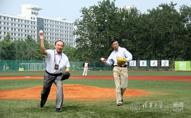 清华新闻网7月13日电(通讯员 李凤敏)7月9日下午,中国棒球联赛第四轮北京赛区的比赛走进清华大学校园,江苏钜马队与北京猛虎队在北操棒球场上演了一场精彩的巅峰之战。校党委副书记、校体委主任史宗恺在开球仪式上致辞,并与国家体育总局手曲棒垒球运动管理中心主任、中国棒球协会主席雷军共同为比赛开球。