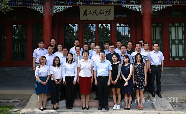 邱勇、陈旭、史宗恺等与毕业辅导员代表合影留念。记者 苑 洁 摄