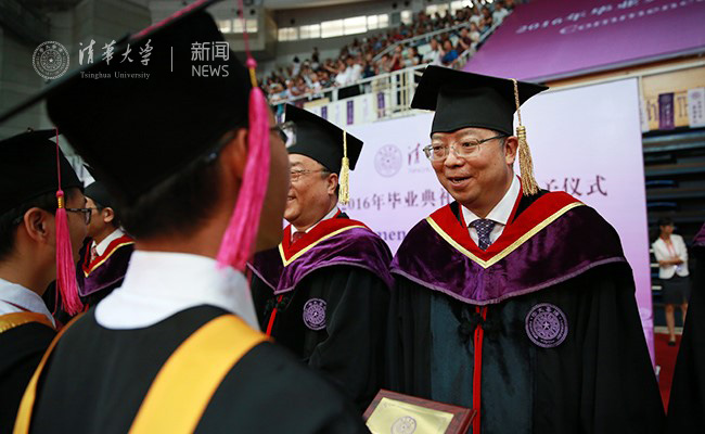 邱勇表示,过去四年,清华见证了同学们的风采。从清华男篮首次打入全国大学生篮球联赛决赛并夺得冠军、法学院代表队作为东亚地区冠军参加“WTO模拟法庭”全球总决赛,到清华超算团队包揽三大国际大学生超算竞赛冠军、话剧《马兰花开》演出,再到APEC志愿者行列,你们用优异的表现把清华人的风貌展示在了世界面前。过去四年,同学们也见证了清华新百年的发展。师生的学习、生活和科研环境得到进一步改善,校园内人文氛围更加浓厚,清华国际合作办学也达到了一个新高度。在新百年迈出的崭新步伐,昭示着清华更加广阔的前景、更加美好的未来。