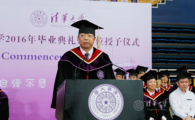 邱勇首先代表学校向获得博士、硕士学位的同学们表示衷心祝贺,并向带领和陪伴同学们的各位老师和他们的家人致以诚挚的敬意。邱勇说,清华园会是同学们一生都牵挂的地方,不仅仅是因为校园自身的美丽,更因为这里有你们留下的足迹、迸发的激情和难忘的青春记忆。