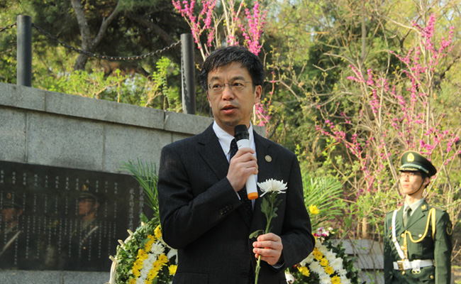清华新闻网4月4日电(学生通讯员 祝 睿)4月4日上午,清华大学清明节祭奠先烈活动在“清华英烈”纪念碑前举行。校党委副书记史宗恺,学生部部长丛振涛、研工部部长张小平、武装部部长熊剑平、校团委书记邴浩,各院系、附中师生代表等约300人参加。