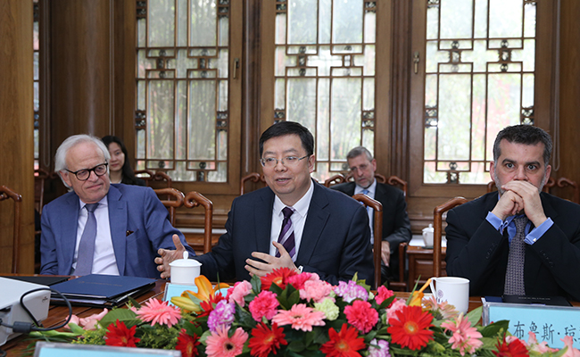 邱勇21日与约翰·桑顿先生进行了会谈,就进一步推进双方合作交换了看法。清华大学副校长杨斌参加会谈。