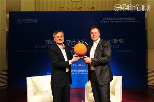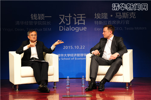 清华新闻网10月23日电 10月22日晚,作为清华大学经济管理学院顾问委员会2015年会议的系列活动之一,清华管理全球论坛在清华举行。清华经管学院顾问委员会委员、特斯拉(Tesla)联合创始人、首席执行官兼产品架构师,SpaceX首席执行官兼首席设计师,SolarCity董事长埃隆·马斯克(Elon Musk)与清华经管学院学院院长钱颖一教授展开了两小时的对话。