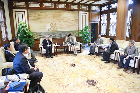 清华新闻网9月9日电 (记者 李含)9月8日,新加坡管理大学校长迪枚晔(Arnoud DE MEYER)教授访问清华大学。清华大学校务委员会主任陈旭在工字厅会见了迪枚晔教授一行。清华大学校长助理施一公参加会见。