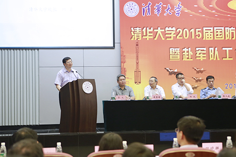 校国防人才培养办公室主任熊剑平向与会的领导和嘉宾介绍了本届国防定向生、飞行学员的培养情况。本届国防毕业生102人、军工定向毕业生生137人、飞行学员毕业生32人,国防生分布在精密仪器系等8个教学院系;军工定向生分布在工程物理系等10个院系;飞行学员全部来自航天航空学院的航15班。4年来,他们各班积极开展党、团、班集体建设,多次获评清华大学先进党支部、清华大学甲级团支部、清华大学先进班集体、北京市“先锋杯”优秀团支部、北京市先进班集体等荣誉;在学习和科研方面,他们成绩斐然,在学校和全国的各种竞赛中多次获得骄人战绩。本届学生有超过75%的同学选择赴京外地区工作,其中,郑小川主动请缨前往西藏的野战部队,门良杰和王静将走上辽宁舰去保卫祖国的万里海疆。