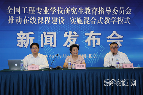清华新闻网7月8日电(记者 刘蔚如)7月7日,全国工程专业学位研究生教育指导委员会召开新闻发布会,宣布正式启动“推进工程硕士在线课程建设,实施混合式教学模式项目”。该项目计划用三年的时间,建设上百门在线课程,使全体工程硕士研究生甚至广大工程技术和工程管理人员都能享受到高质量的工程在线课程,使混合式教学模式成为工程硕士专业学位研究生教育教学的主流模式。