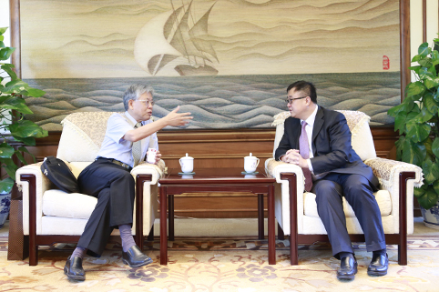 杨斌与周怀朴会谈。记者 张宇 摄
