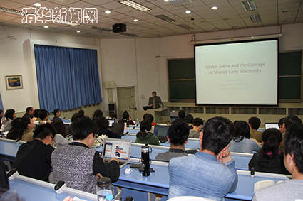 清华新闻网4月29日电(通讯员 熊文苑)4月23日下午,由清华大学外文系、世界文学与文化研究院和国家大学生文化素质教育基地联合举办的“新人文讲座世界文学与文化专场系列”第五场在旧经管报告厅举行。美国密西根大学比较文学系主任大卫·波特教授(David Porter)作了题为《讽喻与文学》(Global Satire)的演讲。