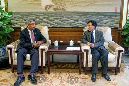薛其坤代表清华大学对卢万普拉教授到访表示欢迎,对他一直以来努力推进两校合作表示感谢,并与他就两校在能源学科建设和技术研究的发展情况进行了交流。