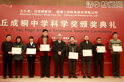 清华新闻网12月15日电(实习记者 曲 田 学生记者 程 玺 袁施薇 王也文) 12月13日下午,第二届丘成桐中学科学奖颁奖典礼在清华大学主楼接待厅举行。清华大学校长陈吉宁,清华大学数学科学中心主任、哈佛大学数学系和物理系教授丘成桐先生出席典礼。