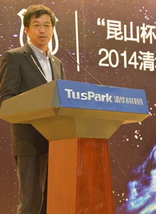 比赛开始前,杨军作了讲话。他回顾了改革开放以来昆山的数次精彩转型,高度评价清华大学与昆山市多年来的合作与互动。清华大学“弱水无极”等优质项目已经落户昆山,在昆山的大力支持下正在加速发展。他表示,创新精神是昆山持续发展的不竭动力,也是当代大学生必备的发展素质。“空间有形,创意无限”,他祝愿每一支参赛队伍都能成功创业,梦想成真。