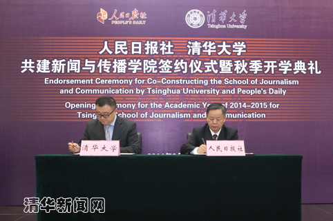 签约仪式上,清华大学校长助理、研究生院院长杨斌,人民日报社副秘书长、人事局局长乔永清分别宣读了清华大学、人民日报社关于共建清华大学新闻与传播学院的决定。杨斌与人民日报社研究部主任刘学渊代表双方签署了共建协议。根据协议,人民日报社与清华大学共同成立新闻与传播学院共建委员会,清华大学副校长谢维和、人民日报社副总编陈俊宏担任主任,人民日报社主要采编业务部门负责人和清华大学各相关部门负责人、新闻与传播学院负责人及专家学者16人组成共建委员会。