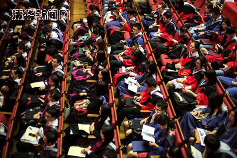 在典礼的最后,全体毕业生及导师合唱清华大学校歌。