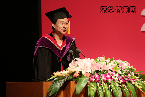 他最后说:“不论未来你身在何方,清华园永远是你的家,当你们遇到困难的时候家里会伸出援手,当你们犹豫不决的时候家里会帮助出谋划策,当你们取得成绩的时候家里会第一个为你们庆祝、为你们骄傲。亲爱的同学们,作为老师,我也代表我们所有的老师,我想说一句:我、我们,爱你们!”