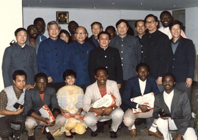 图为清华1986级建筑系校友诺德厚(前排右三)当年获得学习优秀奖后与校领导合影。