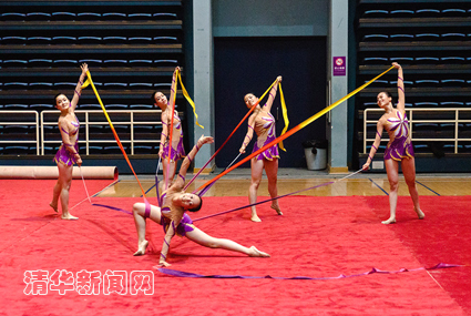 清华新闻网5月27日电(学生通讯员 钟瑞洁) 5月24日,第三十五届首都高校艺术体操大赛在北大邱德拔体育馆举行。清华大学艺术体操代表队在本次大赛中斩获佳绩,一举夺得团体总分冠军并包揽乙组个人单项所有冠军。在教练周小菁副教授的带领下,清华大学艺术体操代表队在本次大赛上发挥稳定而出色。