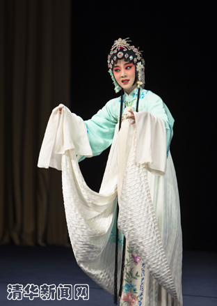 演出一共进行了两个半小时,虽然其布景简单,多为一桌数椅,但演员的神态、动作无一不让观众身临其境,深深融入到剧目氛围中。如《白罗衫•诘父》里,为官的儿子和曾为江洋大盗的养父几个问答之间,用其微微颤抖的身体和唱段之间的停顿制造出紧张而悲凉的气氛,现场鸦雀无声,甚至有些观众流下了泪水。同时,在一些剧目的演出中,演员也加入了不少“清华”元素,笑料百出,让全场观众哄堂大笑。